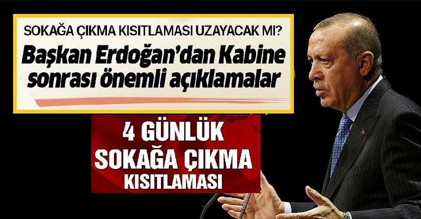 Son dakika haberi... Kabine, Başkan Recep Tayyip Erdoğan liderliğinde koronavirüs gündemiyle toplandı. Toplantıda 23-24-25-26 Nisan'ı kapsayan dört günlük sokağa çıkma yasağının ilan edilmesi önerisi de masadaydı. Başkan Erdoğan, alınan kararlarla ilgili önemli açıklamalarda bulunuyor.