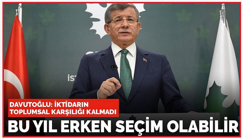 Gelecek Partisi lideri Davutoğlu, ekonomik gidişatın kötüye gittiği ve yolsuzlukların arttığı böyle bir dönemde erken seçim talebinin çok doğal olduğunu ifade ederek, “Bu sene erken seçim olma ihtimali var, 2022'de erken seçime gitme ihtimali ise çok yüksek” dedi.