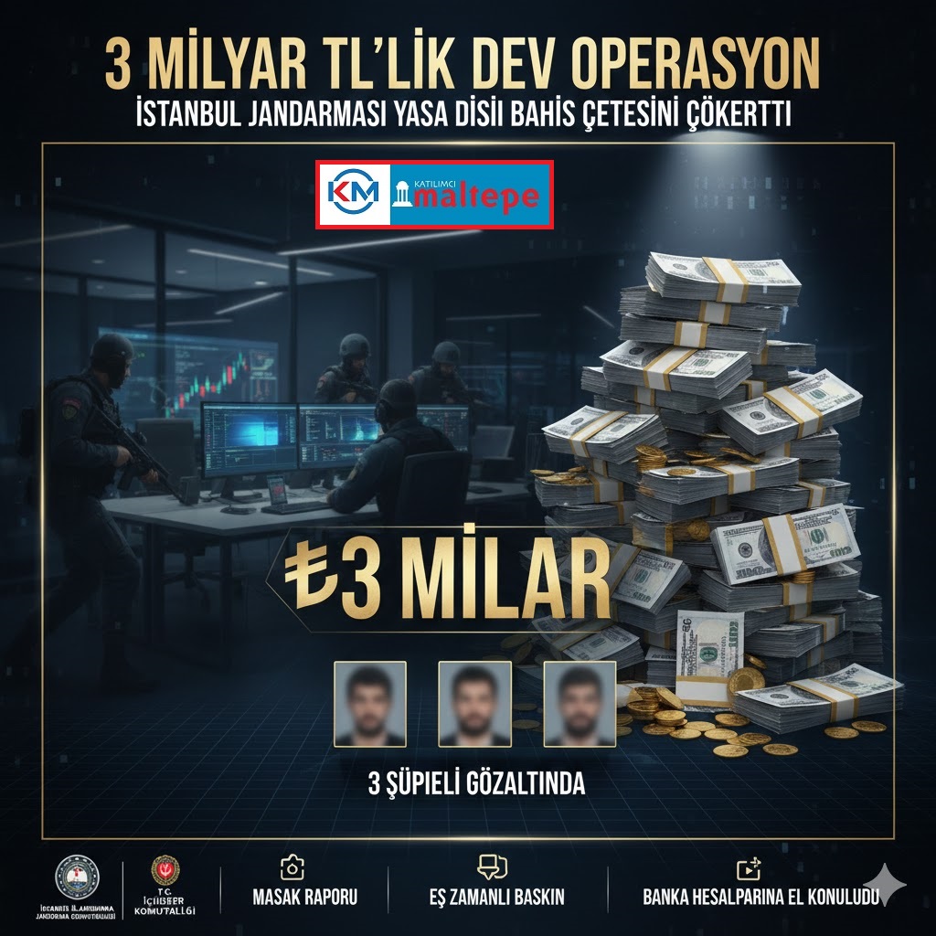 İstanbul'da Bahis Depremi Suç İmparatorluğu Yıkıldı Jandarmanın Takibi Sonuç Verdi Jandarma ekipleri, şüphelilerin banka hesaplarındaki 3 milyar TL'ye el koydu